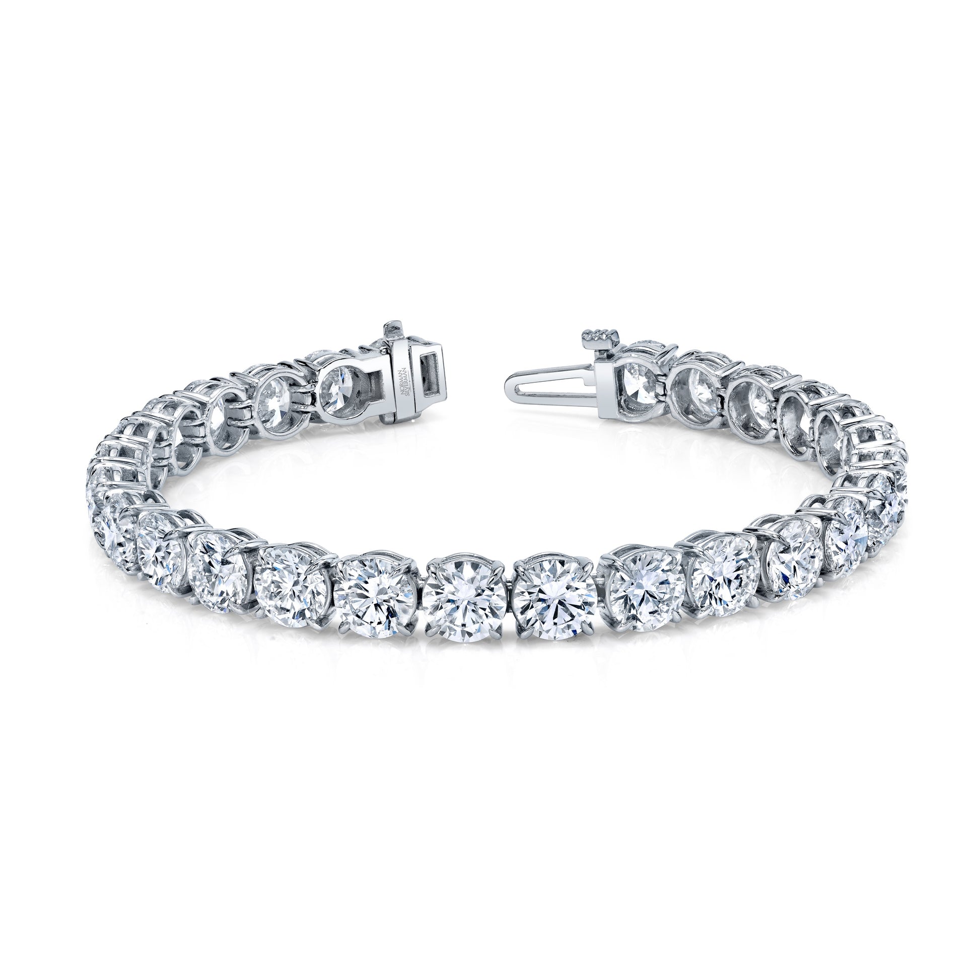 Indulge in pure luxury with our stunning Signature Round Diamond Straight Line Bracelet, featuring a breathtaking 27.23 Carat round cut diamond set in platinum with 4 prongs for added security. This exquisite piece is the ultimate statement of luxury and elegance, making it the perfect addition to any jewelry collection.