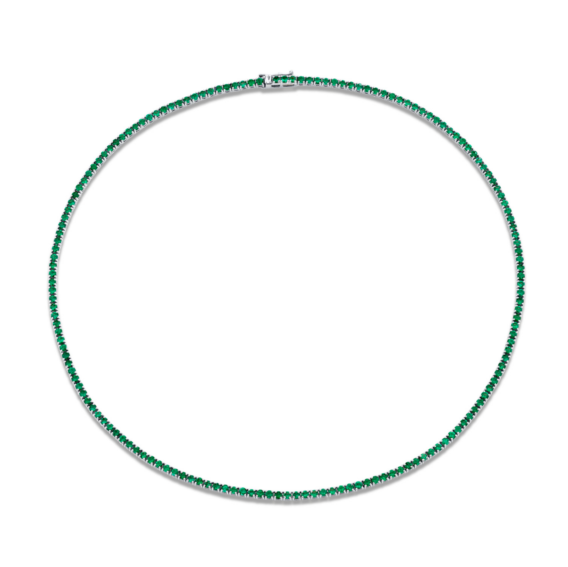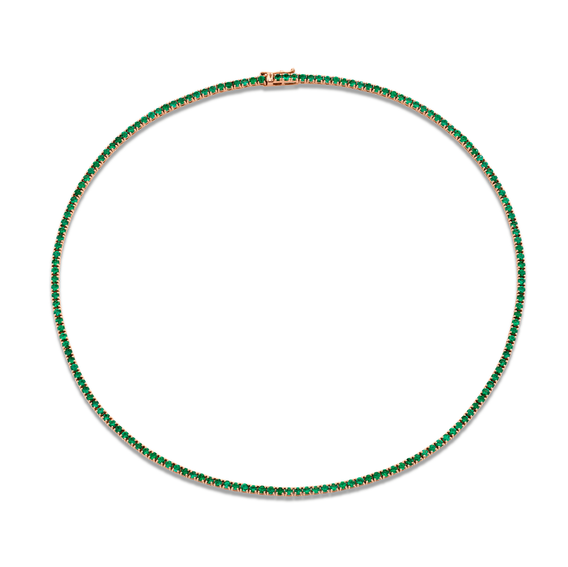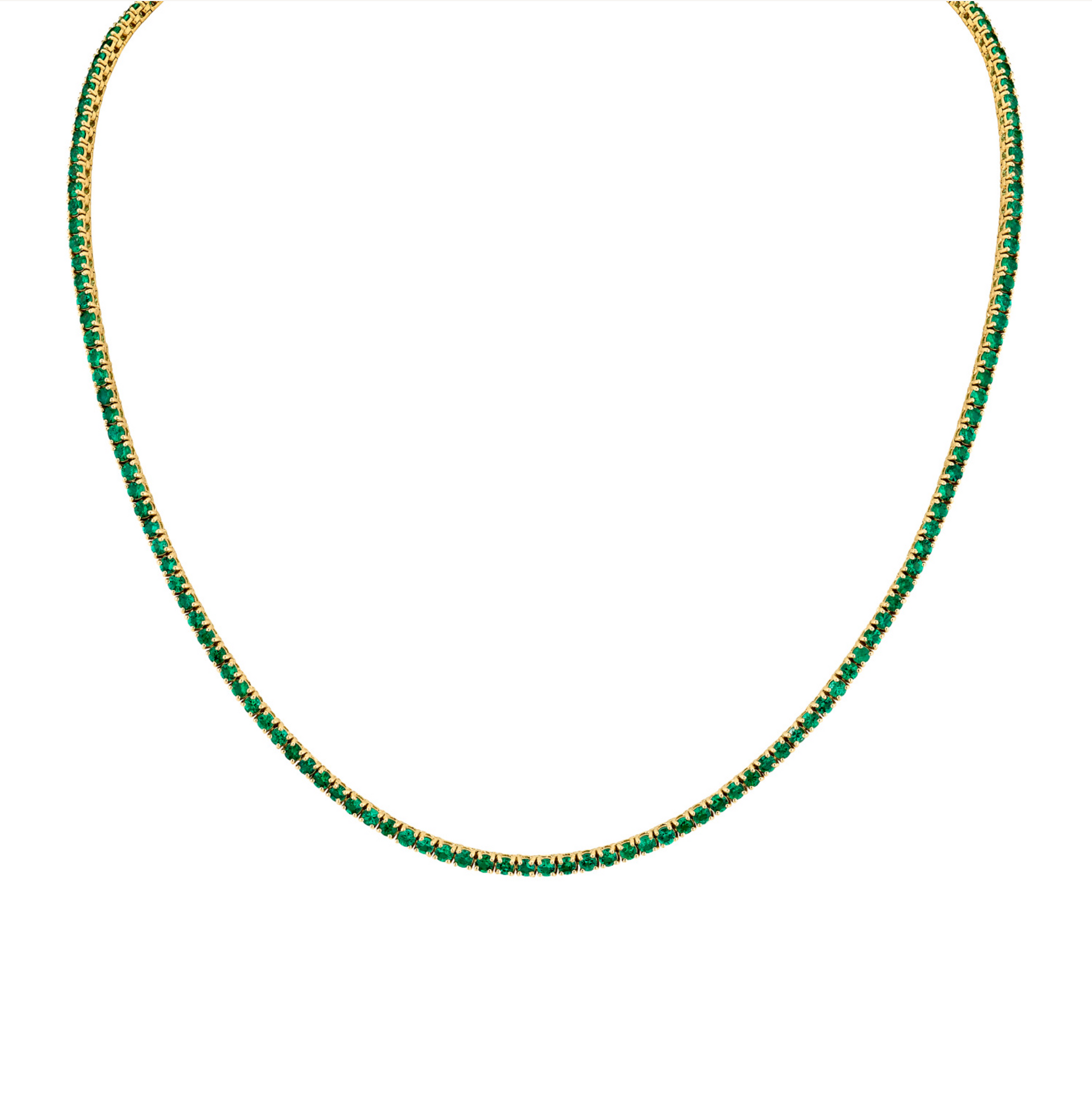 6.27 Carat 18k Yellow Gold Green Emerald Straight Line Necklace
