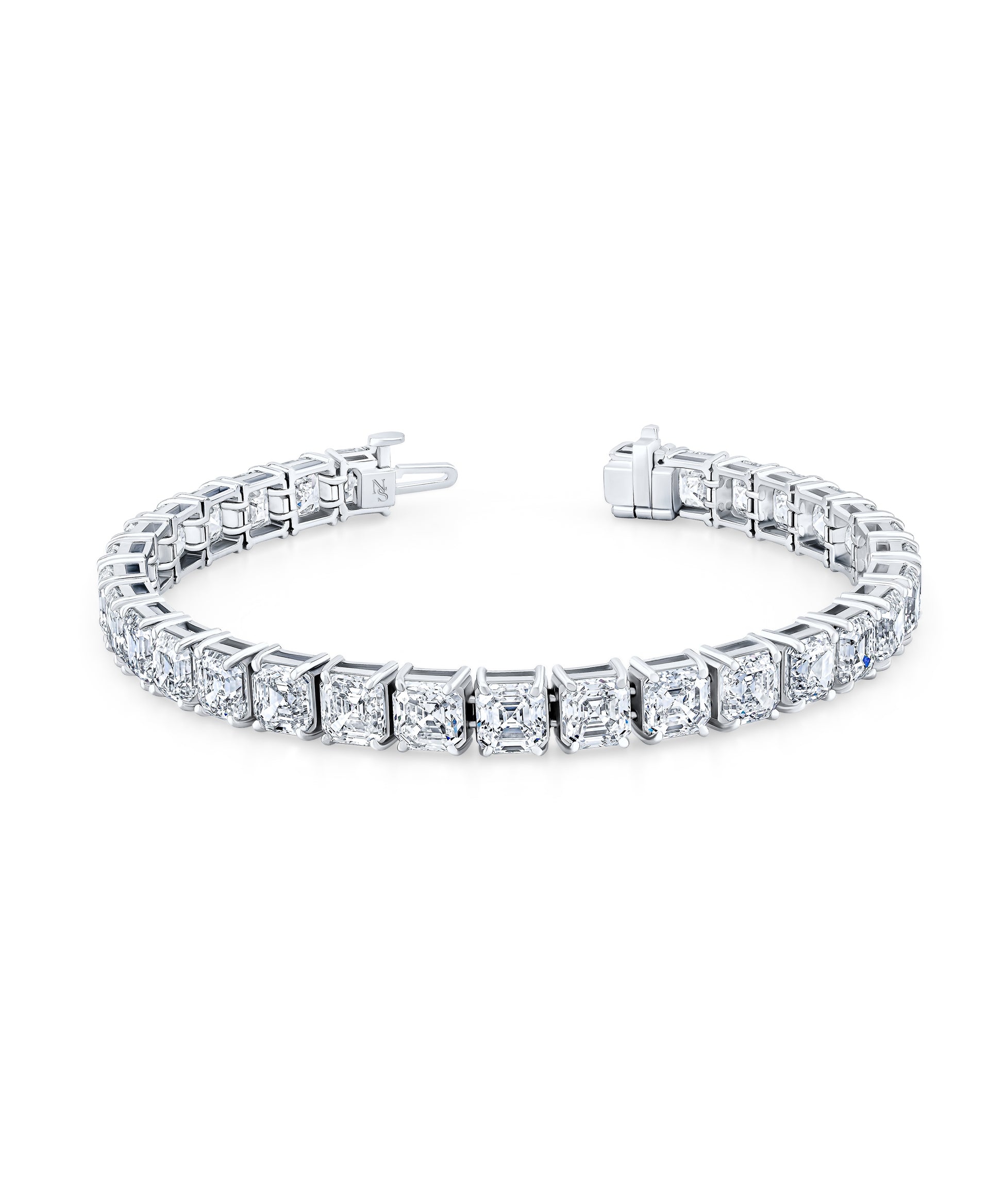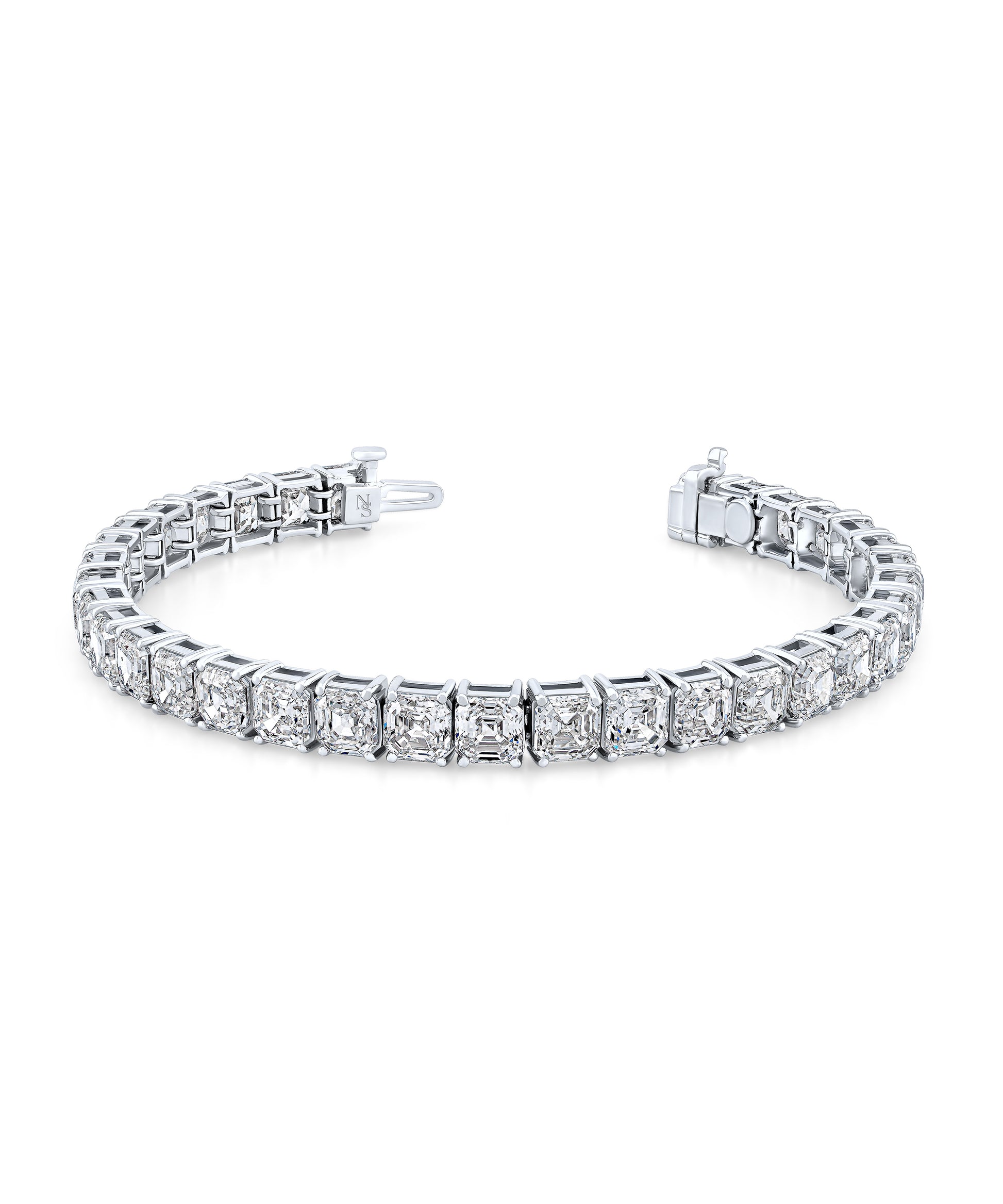 Our Asscher Diamond Straight Line Bracelet brings together prong set asscher diamonds in a sleek platinum setting. It’s timeless, effortless, and made to turn heads. Available in various carat weights.