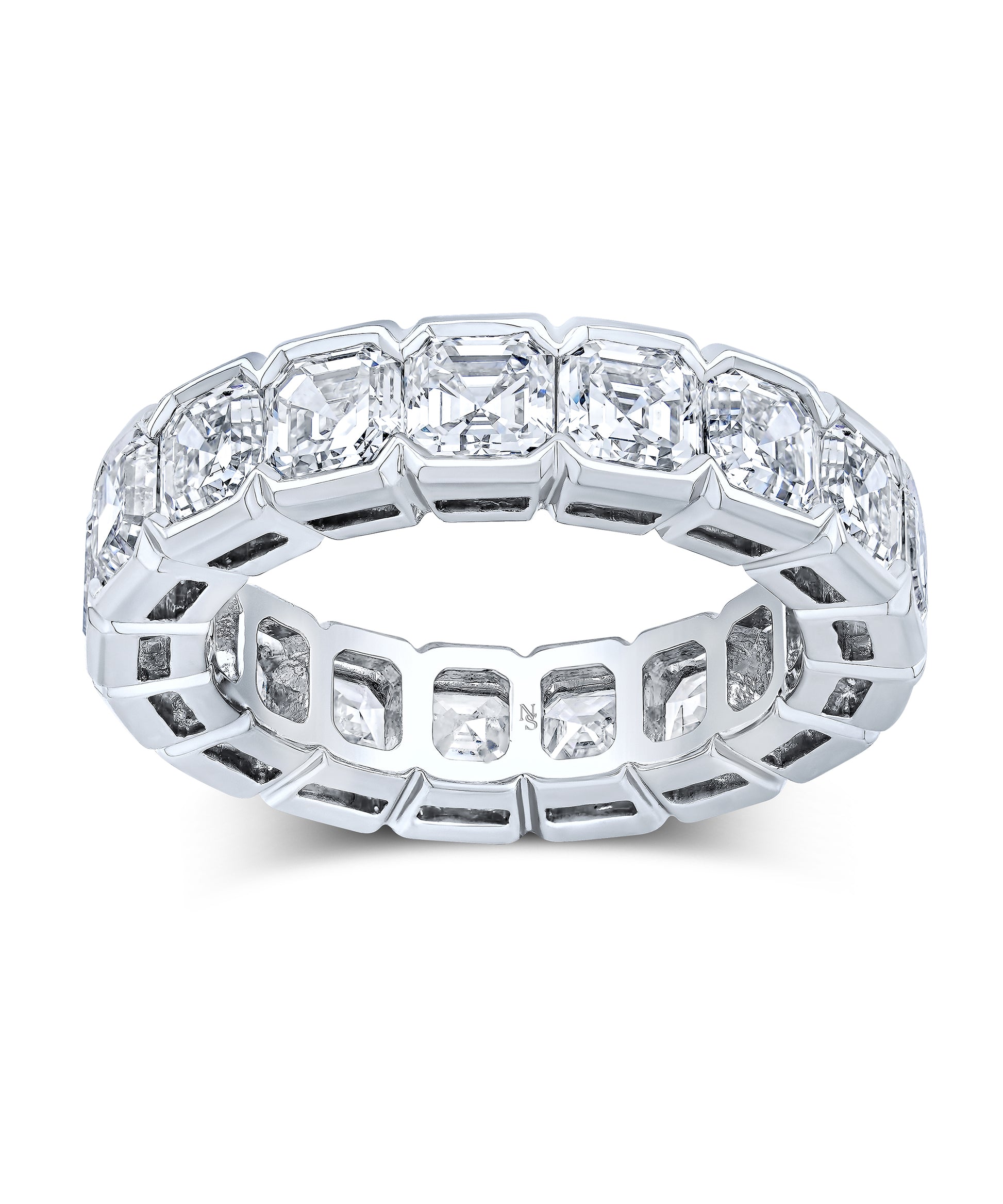 Sleek and sculptural, our Asscher Half Bezel Eternity Band features nearly 7.00 carats of diamonds, set in platinum. A modern twist on a classic, made to stack or stand alone.