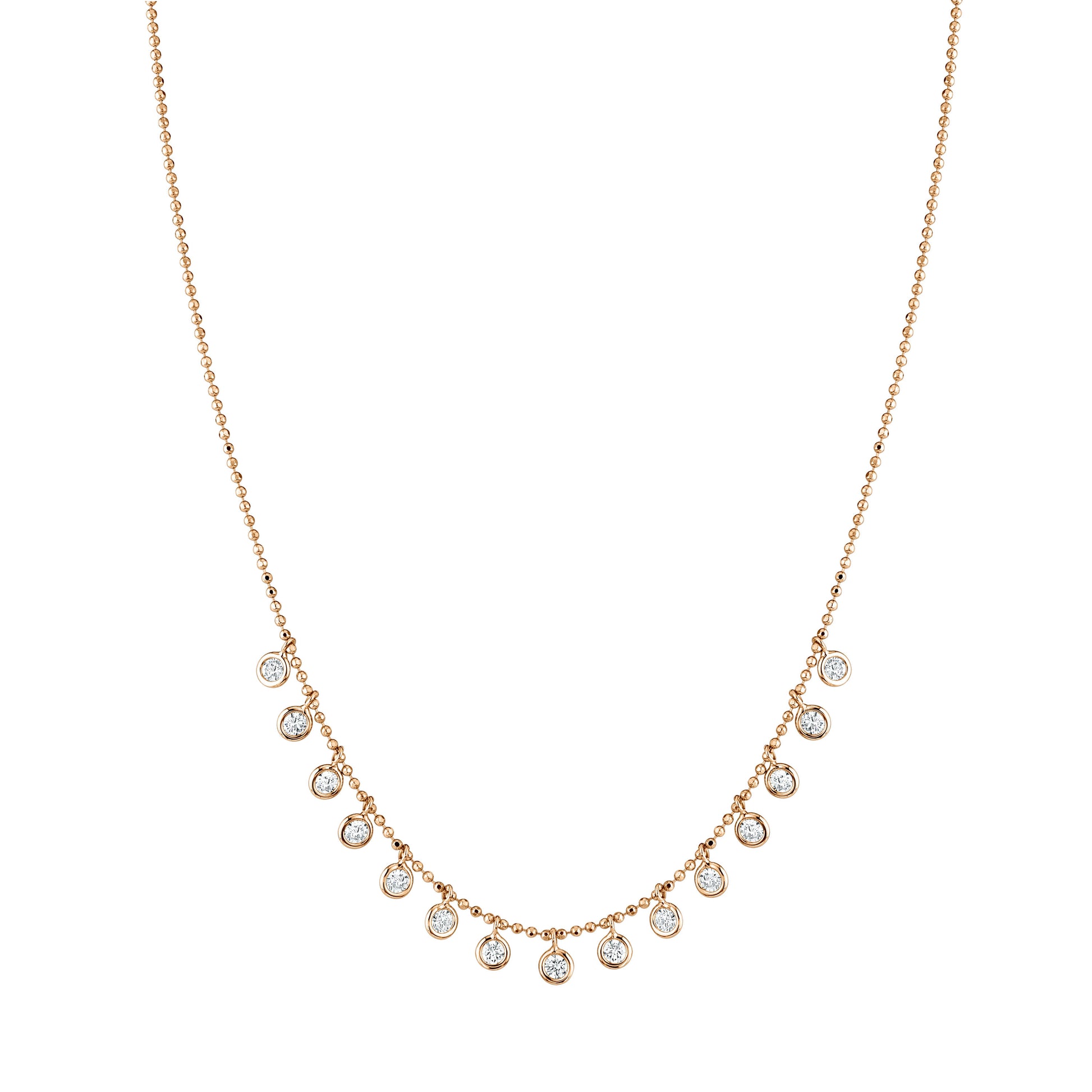 Embrace sophistication with our Dangle Diamond Necklace, a statement of timeless elegance. Meticulously crafted, this necklace features a captivating arrangement of round diamonds that gracefully dangle, catching the light with every movement.