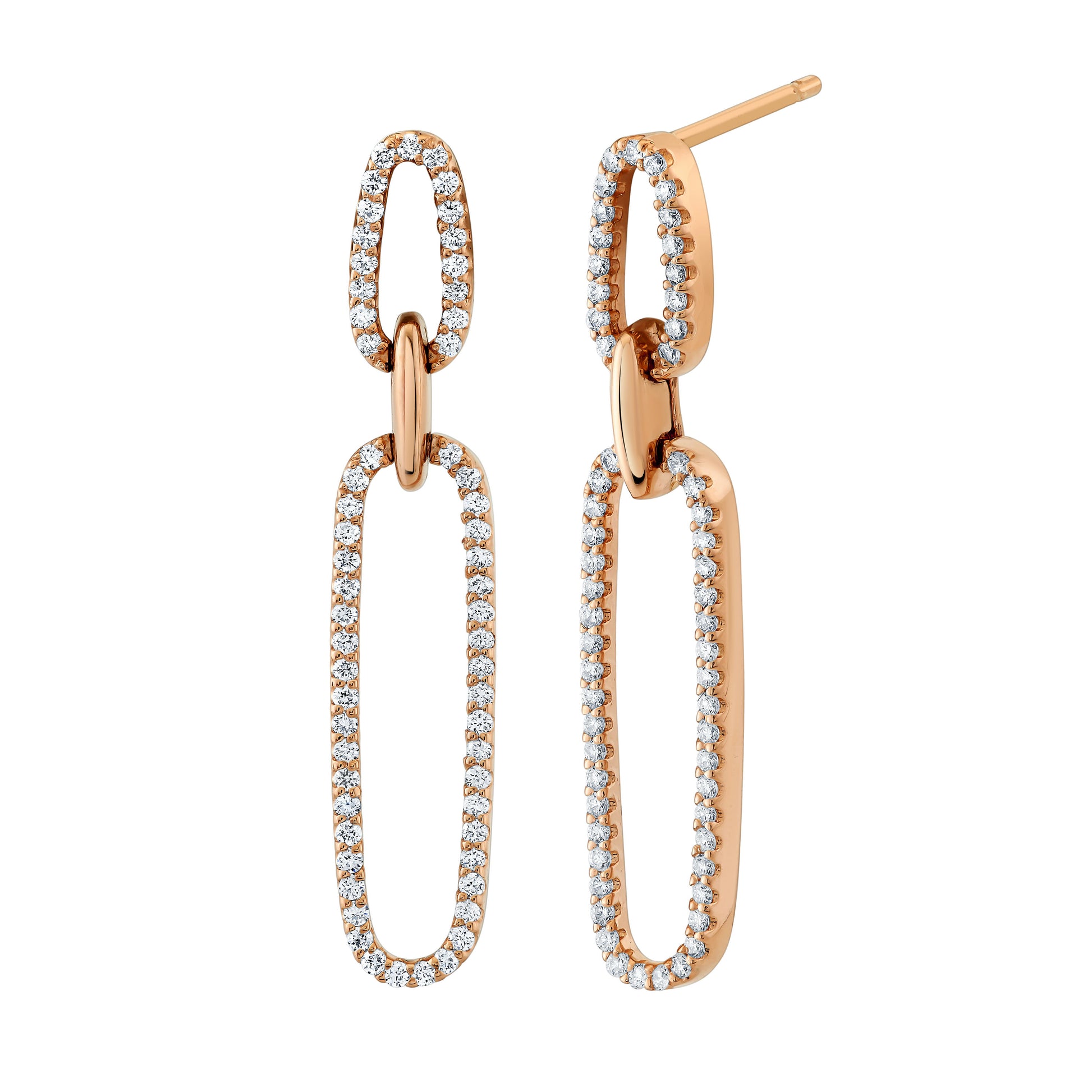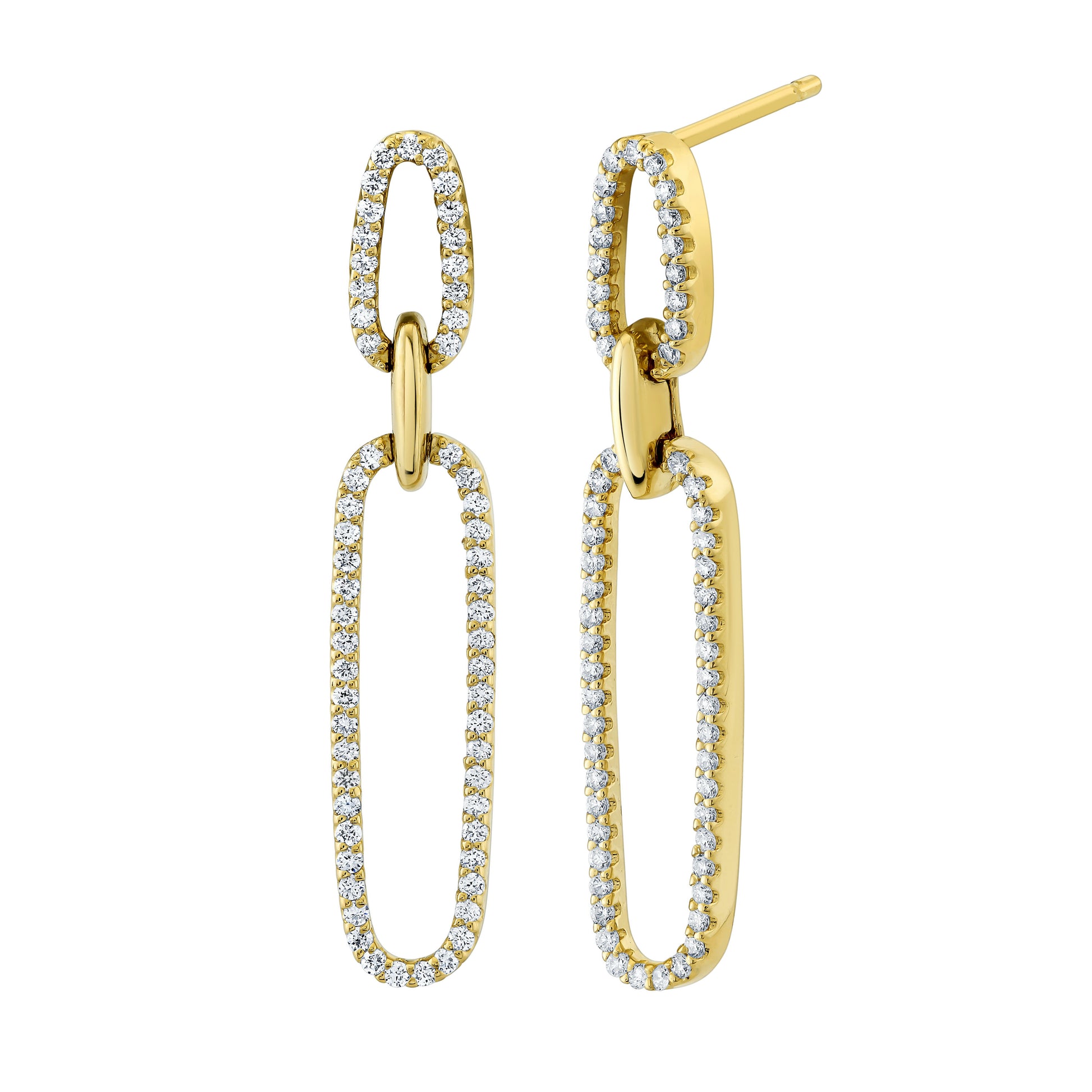 Experience exquisite sophistication with our Diamond Dangle Earrings featuring a paper clip design. Crafted to perfection, these earrings exude timeless elegance with their dazzling display of diamonds. The paper clip style adds a modern twist to classic luxury, making these earrings perfect for any occasion.