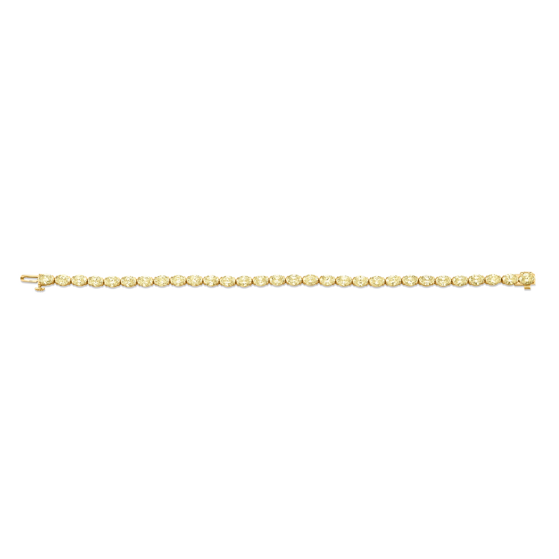 This bracelet features fancy yellow oval diamonds totaling 14.41 carats, set East West in 18k yellow gold. A warm, modern design that highlights the distinctive shape and rich color of each stone.