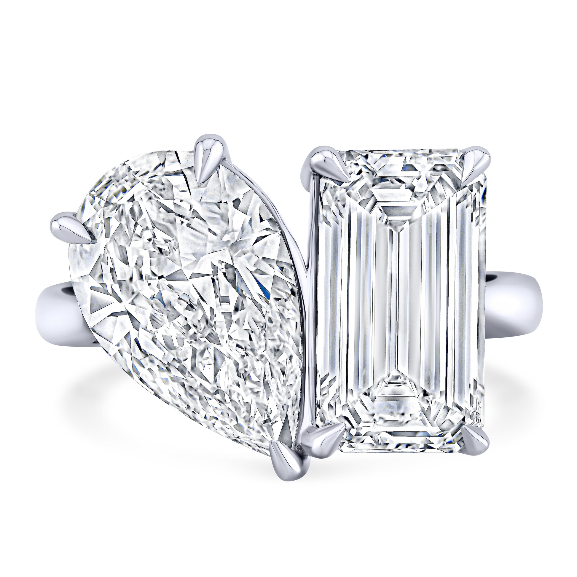 Discover luxury with our Emerald and Pear Shape Twin Ring, featuring over 3 carats of dazzling gemstones set in premium platinum. Perfectly crafted for elegance and timeless beauty, this statement piece offers unmatched sophistication.