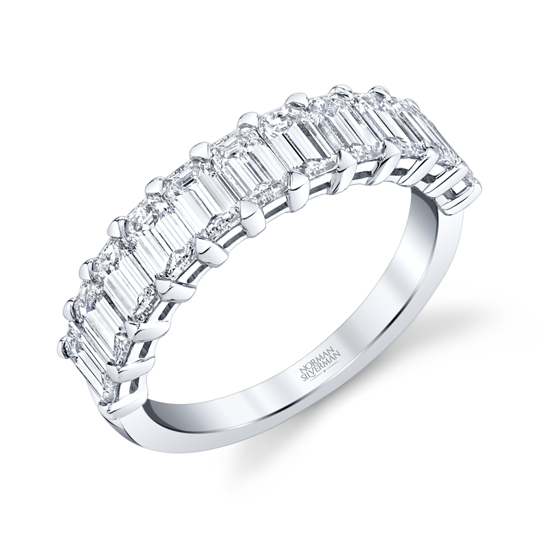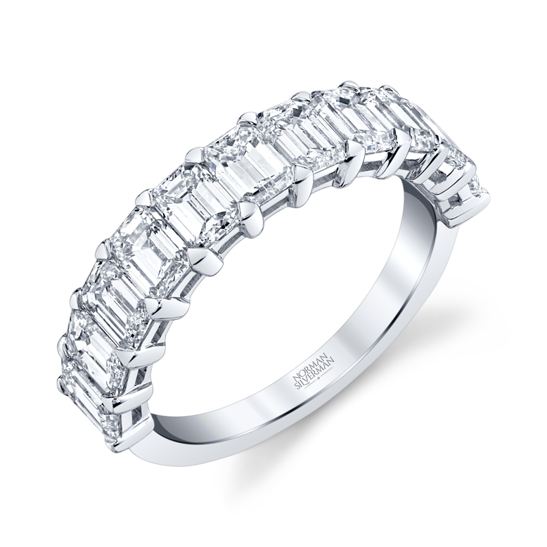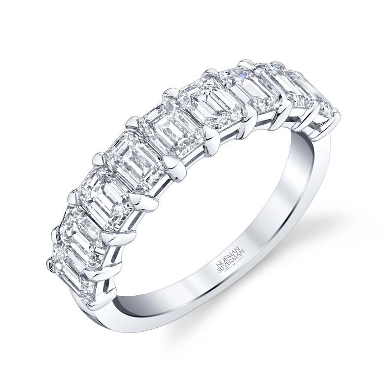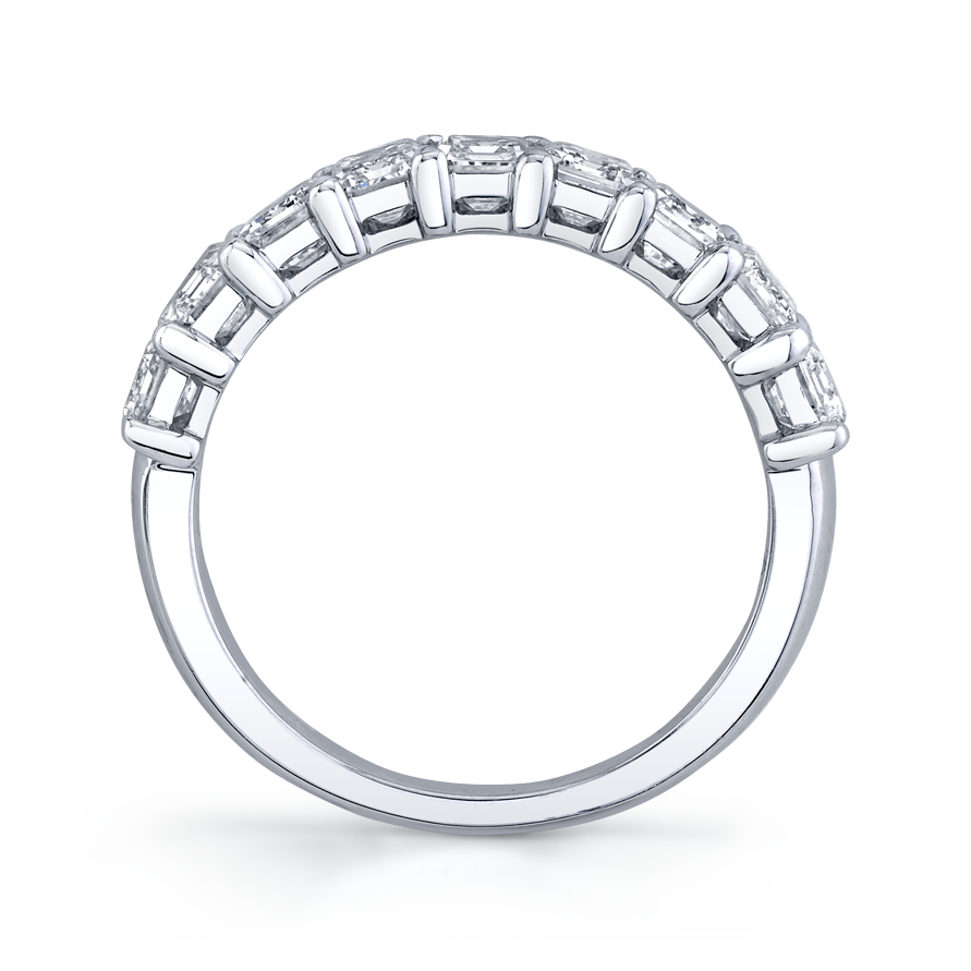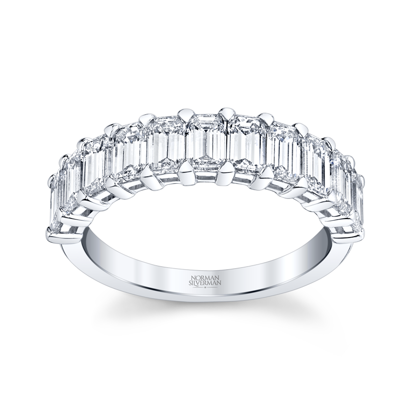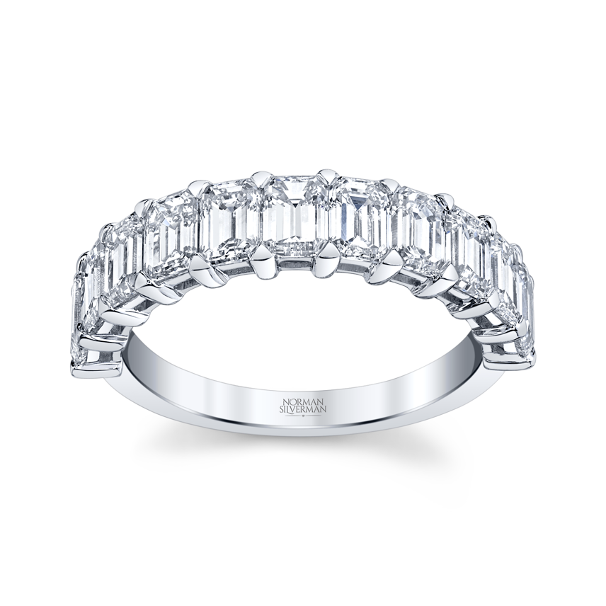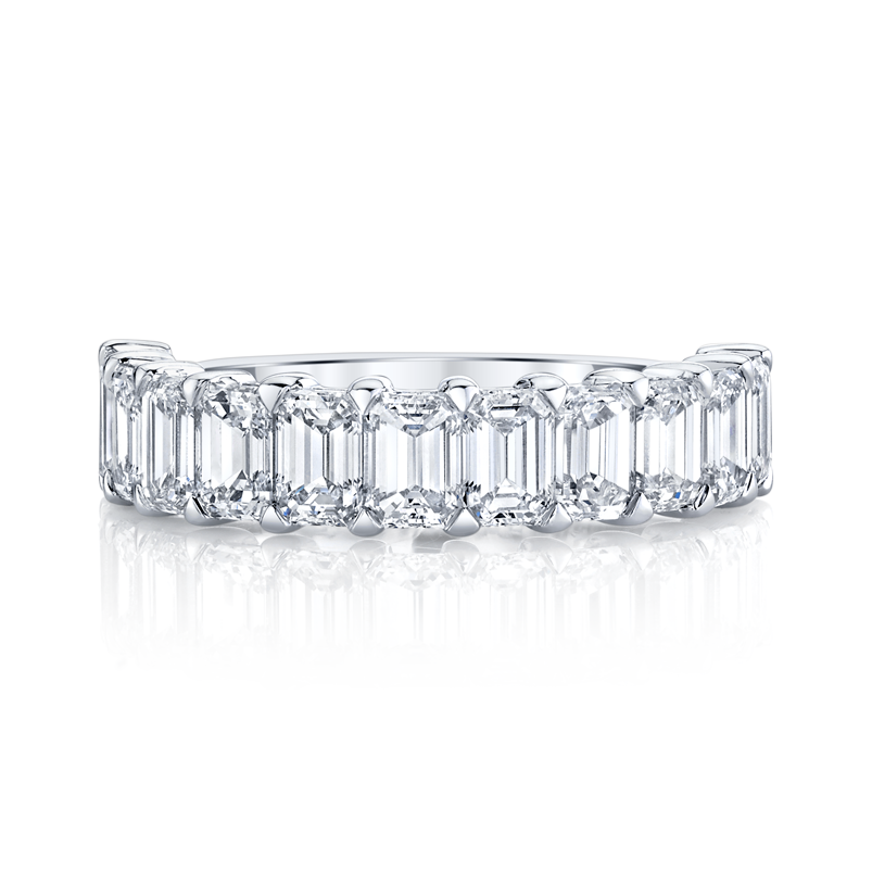 Indulge in a classic, with our Emerald Cut Diamond Halfway Band, set in platinum with shared prongs. Available in total carat weights from 2.00 to 5.00, this exquisite piece combines timeless sophistication and brilliant sparkle, making it a perfect symbol of lasting beauty and love.