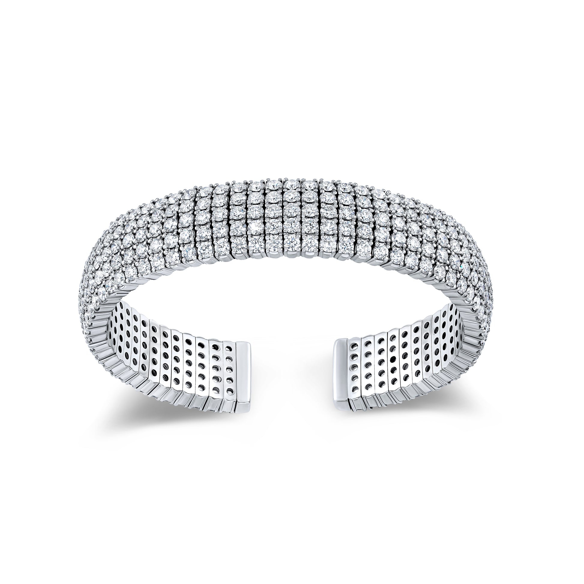 This five-row cuff bracelet showcases 15.63 carats of round brilliant diamonds—305 in total—set in 18k white gold. A bold yet refined statement of brilliance, designed with precision and timeless elegance.
