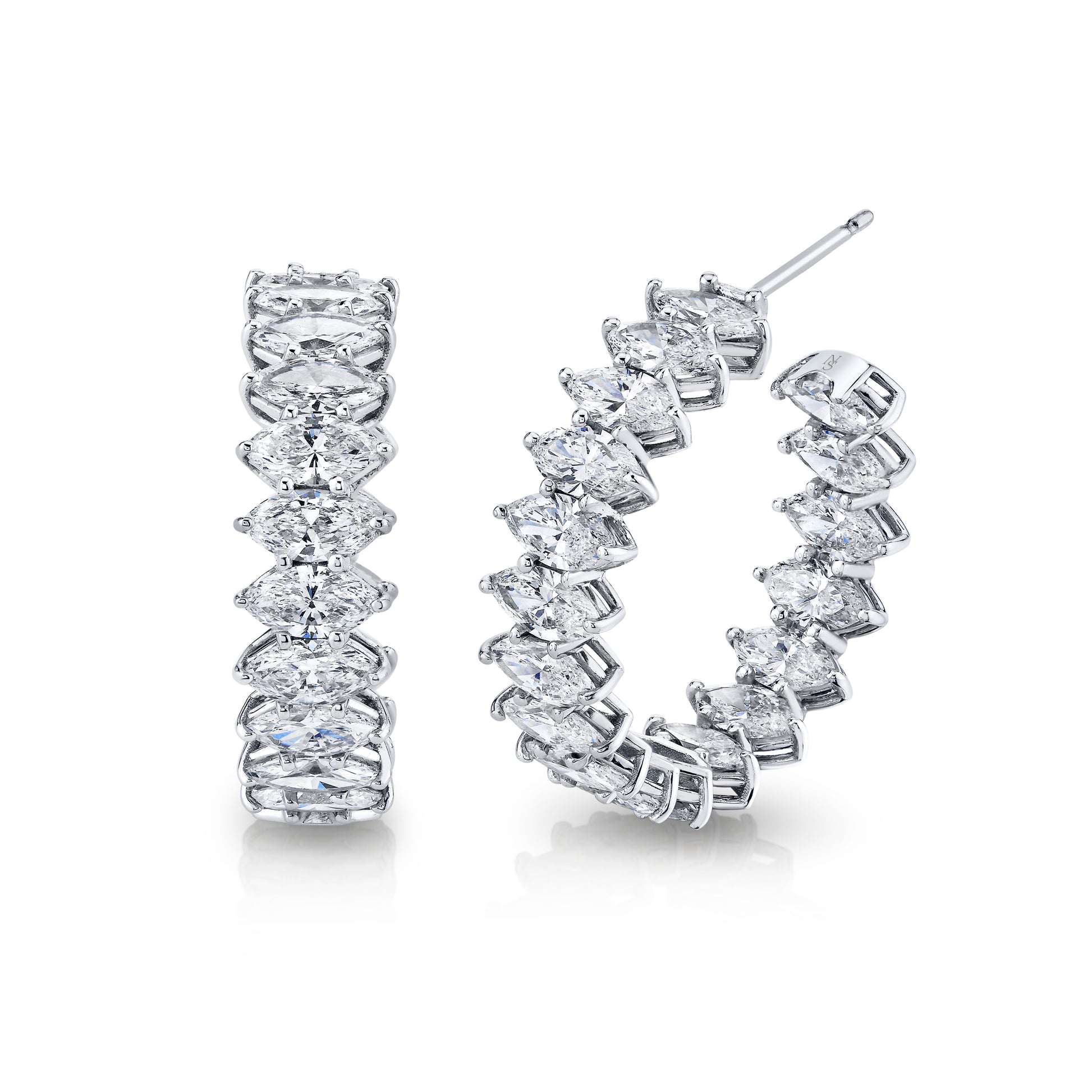 Discover the ultimate in sophistication with our Marquise Inside-Out Hoops, featuring over 11.50 carats of marquise diamonds set in 18k white gold. The inside-out design offers exceptional sparkle from every angle, creating a timeless, luxurious statement piece perfect for any occasion.