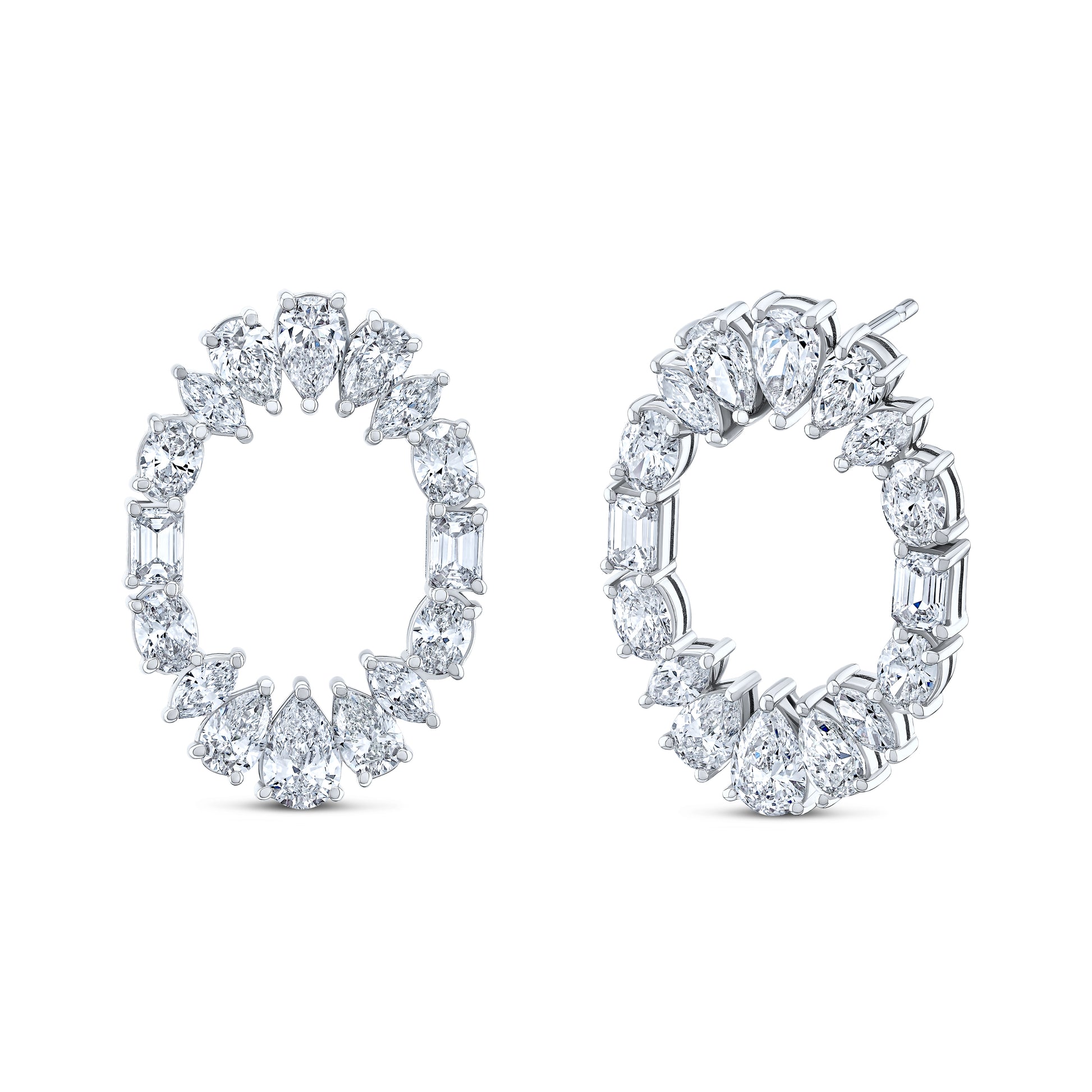 This stunning design features an open center surrounded by a dazzling array of mixed fancy-shaped diamonds, with over 6 carats of total diamond weight. Set in luxurious 18K white gold, this piece offers a sophisticated blend of elegance and modern style.