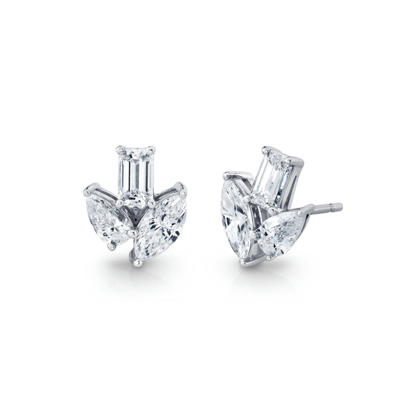 These Multi Fancy Shape Diamond Stud Earrings are a modern mix of fancy-cut diamonds, set in your choice of 18k yellow, white, or rose gold. Bold, brilliant, and beautifully unique.