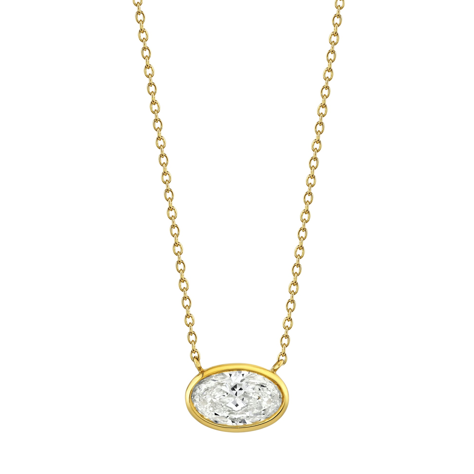 Indulge in elegance with our Oval Cut Diamond Bezel Pendant. This certified masterpiece features a brilliant oval-cut diamond delicately cradled in a sleek bezel setting. Perfect for adding a touch of glamour to any ensemble, whether for special occasions or everyday wear.
