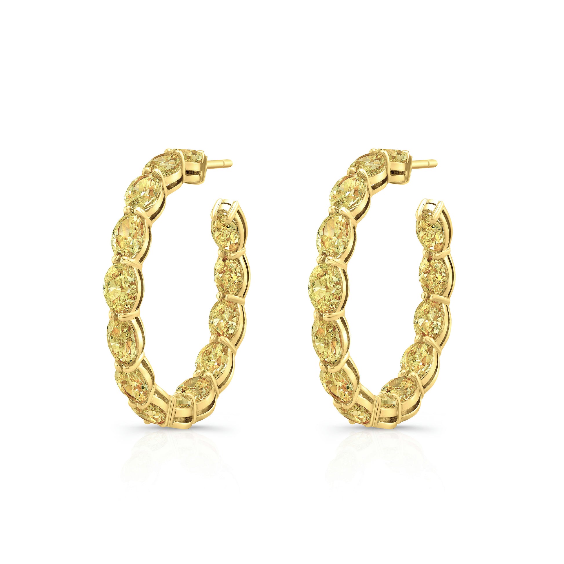 Fancy Yellow Oval Diamond Hoop Earrings