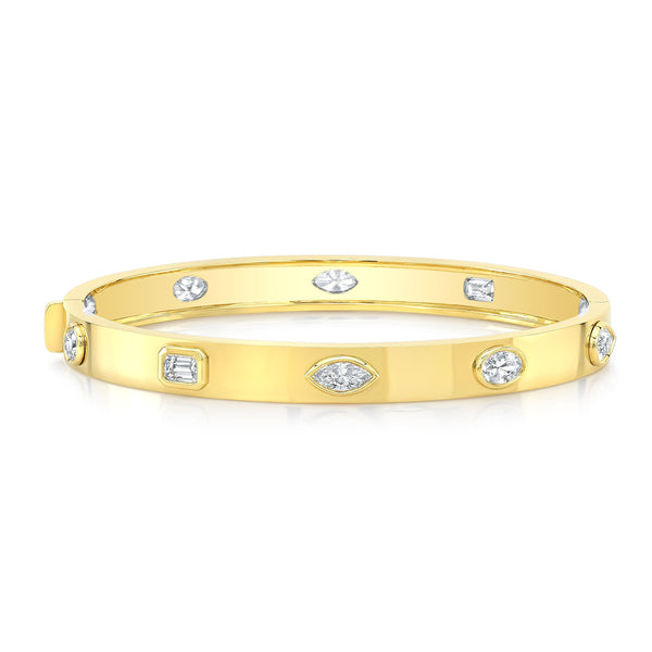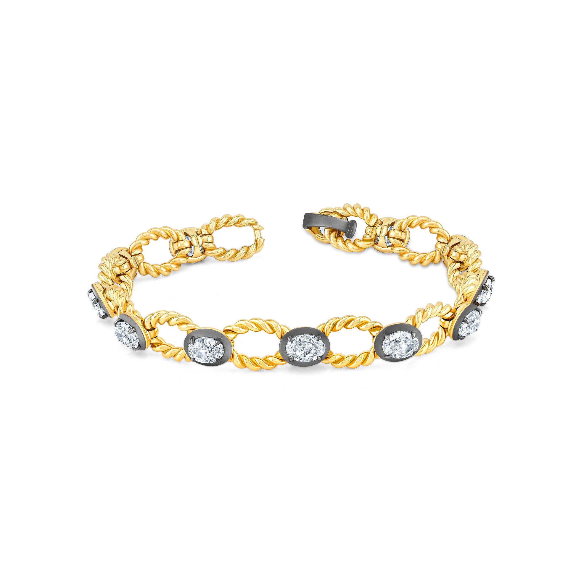An elegant fusion of form and brilliance, this 18k yellow gold bracelet features 8.44 carats of round diamonds set within sculptural oval links. A timeless design that radiates effortless sophistication.