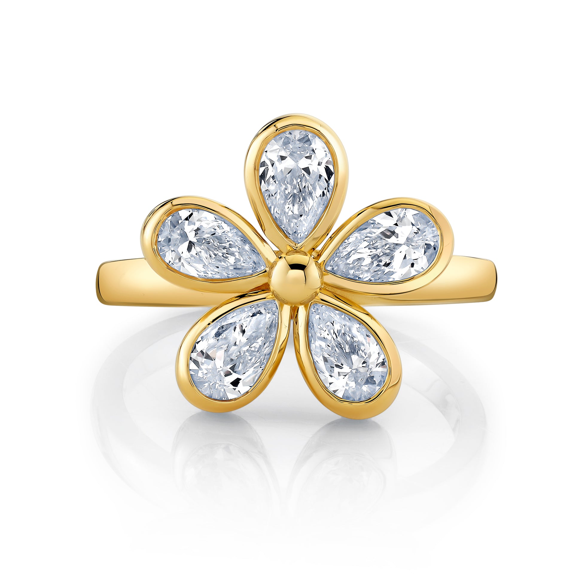 A delicate flower design featuring 1.56 carats of diamonds set in 18k yellow gold. Elegant and feminine, it captures the perfect balance of sparkle and warmth.