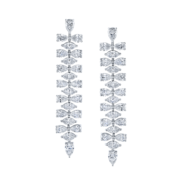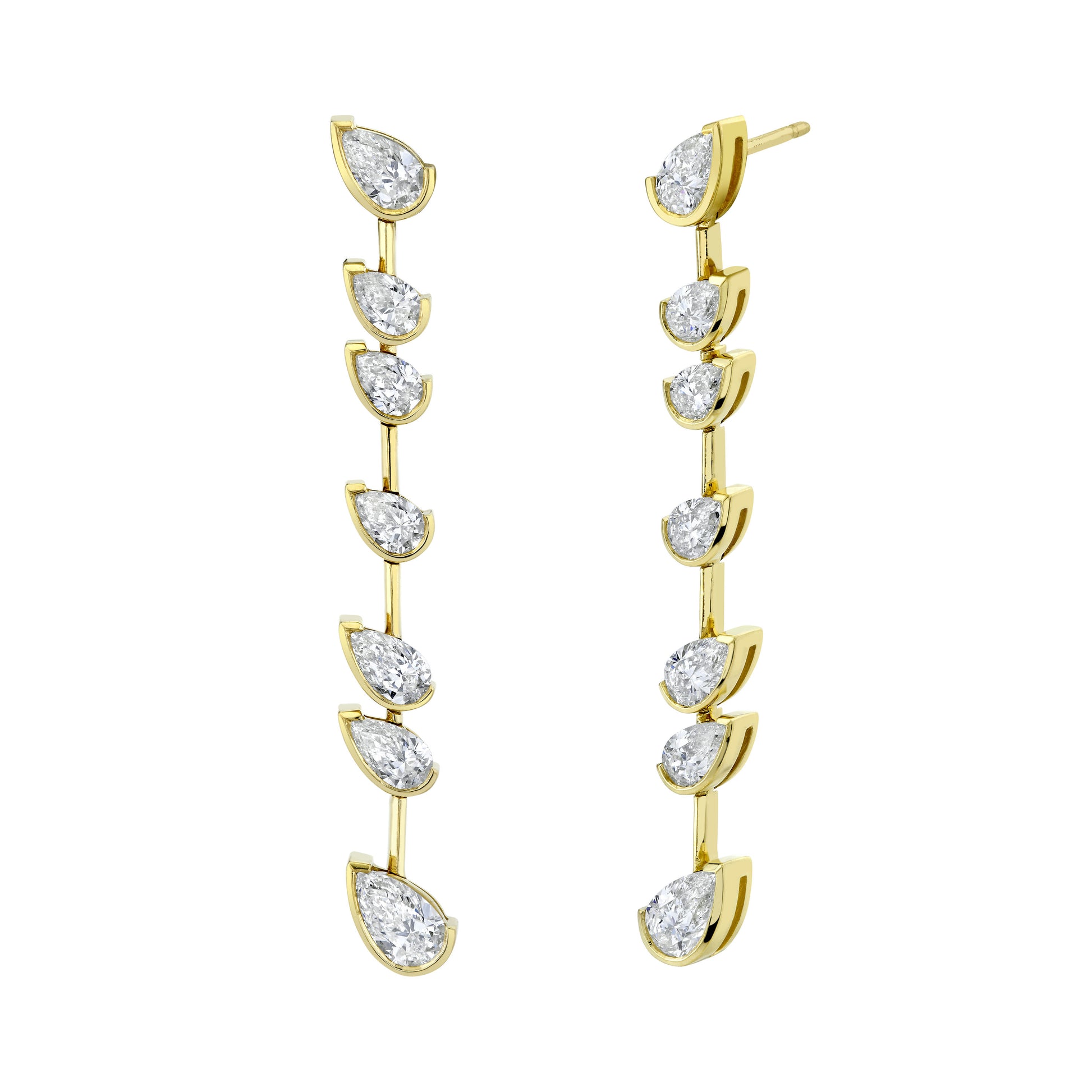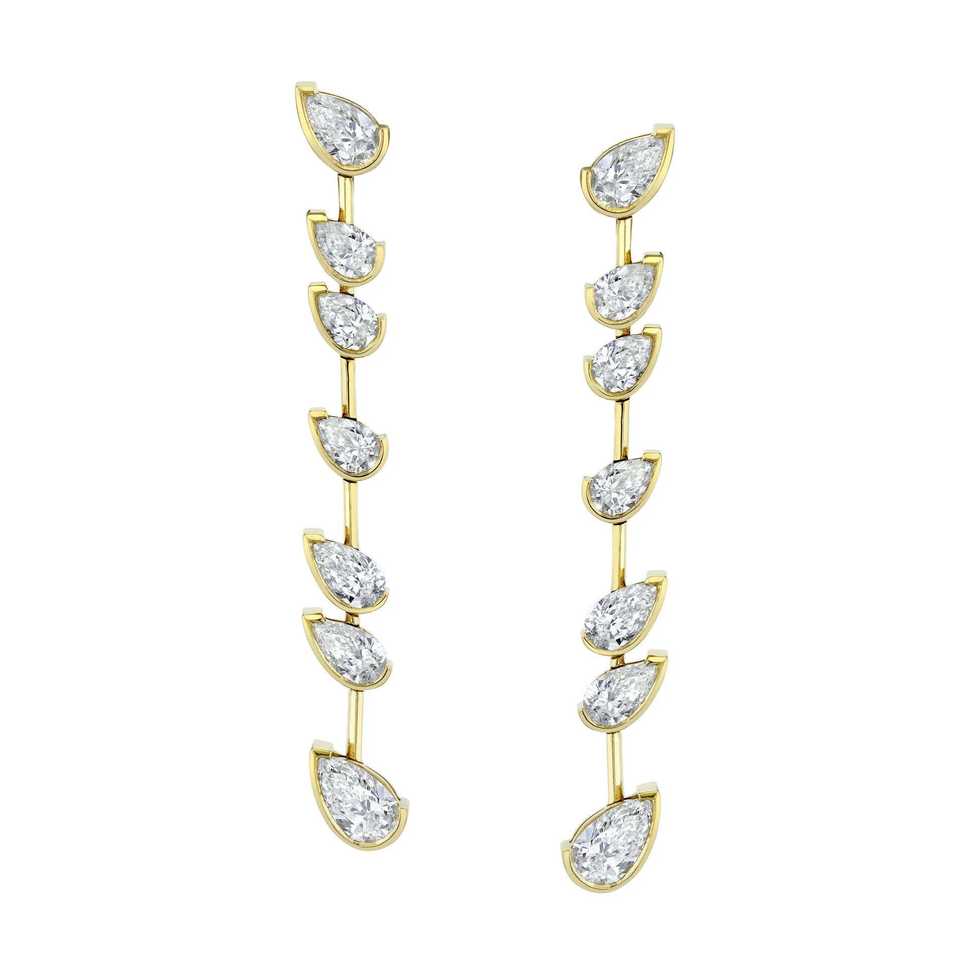 Adorn yourself with elegance in our Pear Shape Diamonds Drop Earrings. Each diamond, fashioned into a captivating pear shape, gracefully descends in a sophisticated bar setting.