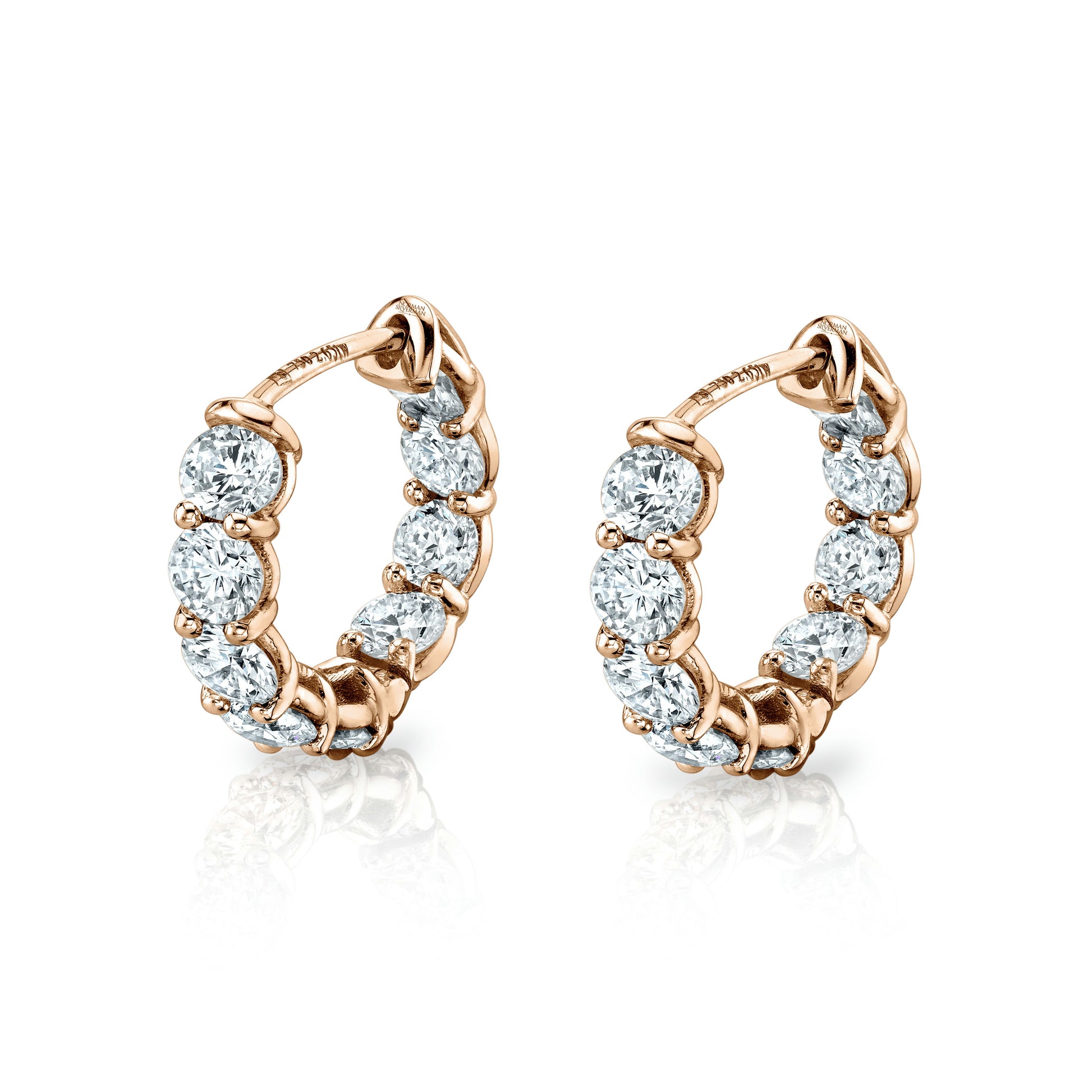 Indulge in the ultimate luxurious accessory with our Round Diamond Inside-Out Huggie Earrings. Expertly crafted in 18 carat gold, these earrings exude sophistication and opulence. Each pair features over 2.50 carats of glittering diamonds, guaranteed to elevate any ensemble. Available in various metal colors.