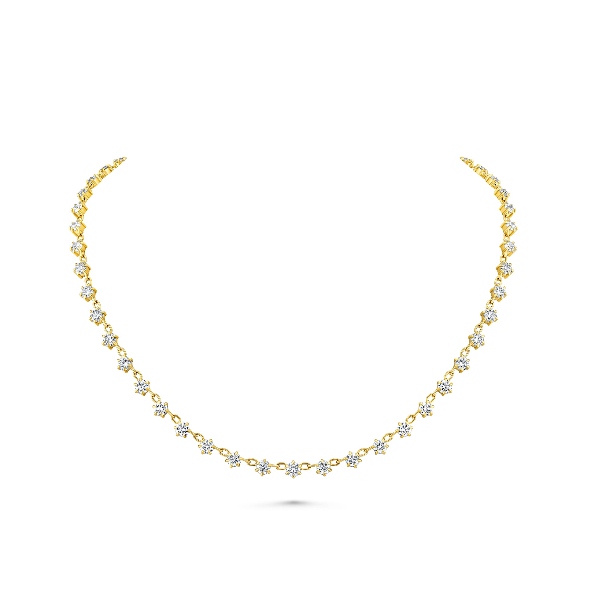 This diamond chain features 11.11 carats of round brilliant diamonds set in 18k yellow gold. A timeless essential with refined sparkle, perfect worn alone or layered for added shine.