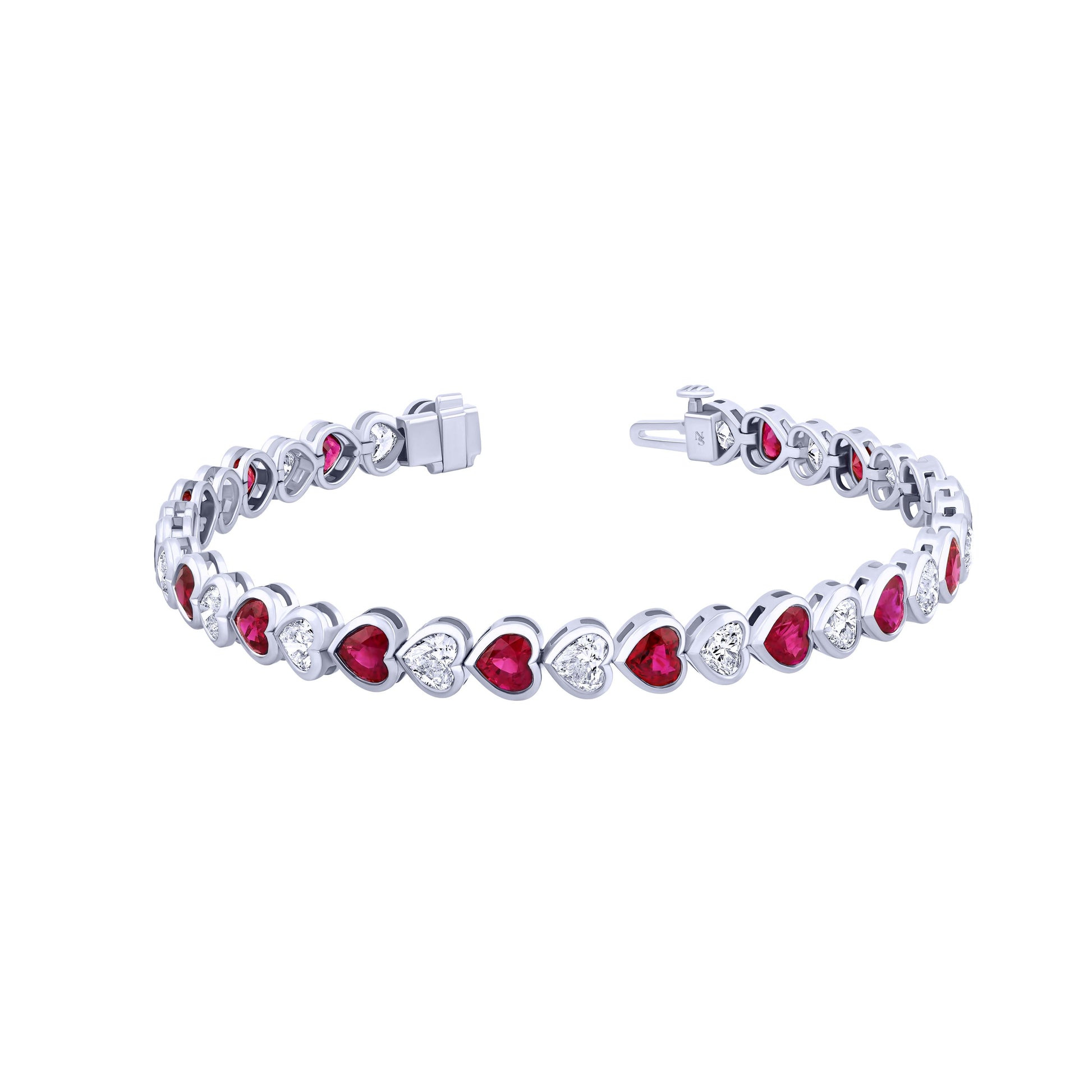 Ruby and Diamond Heart Bezel Set Bracelet
