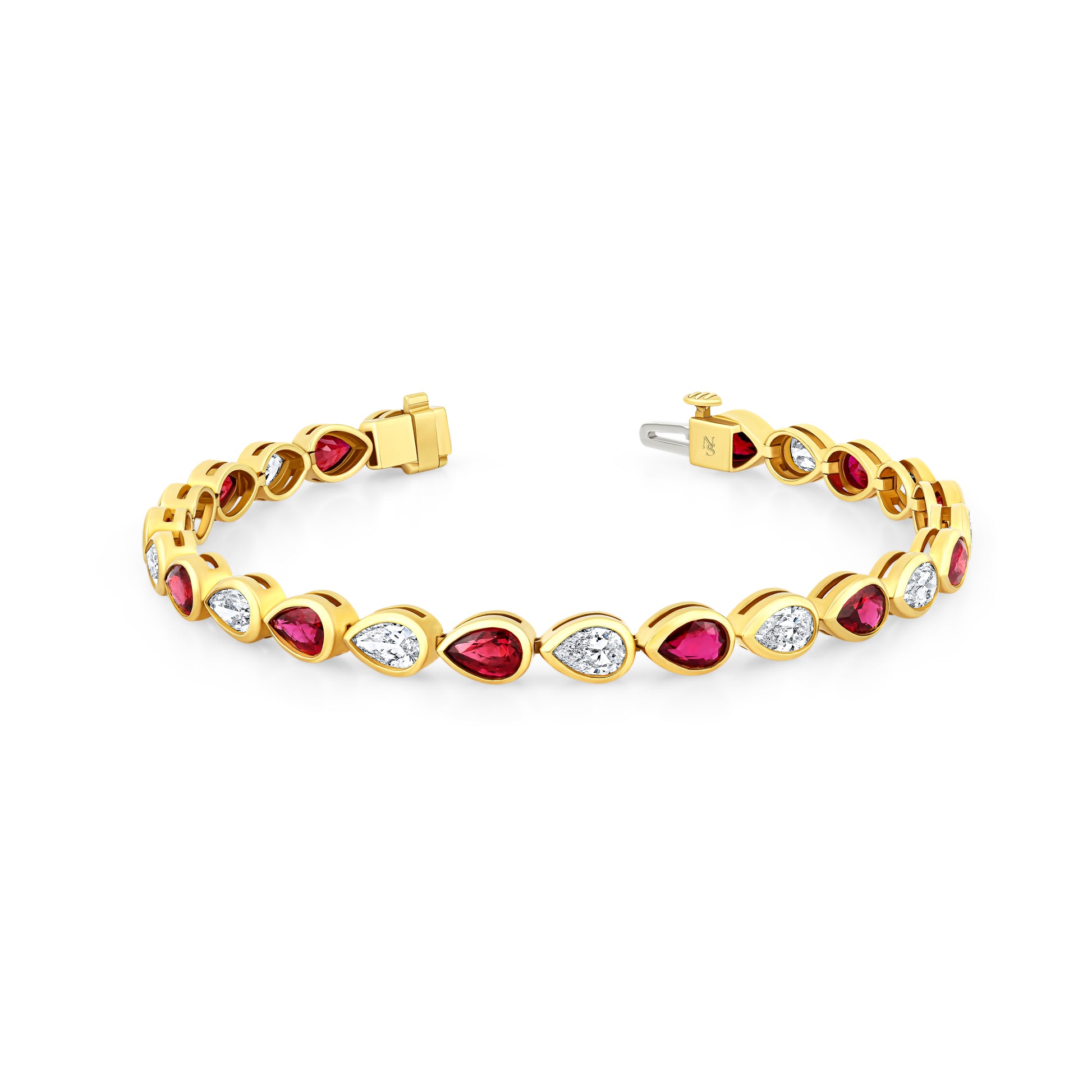 Ruby and Diamond Sideways Pear Bezel Set Bracelet