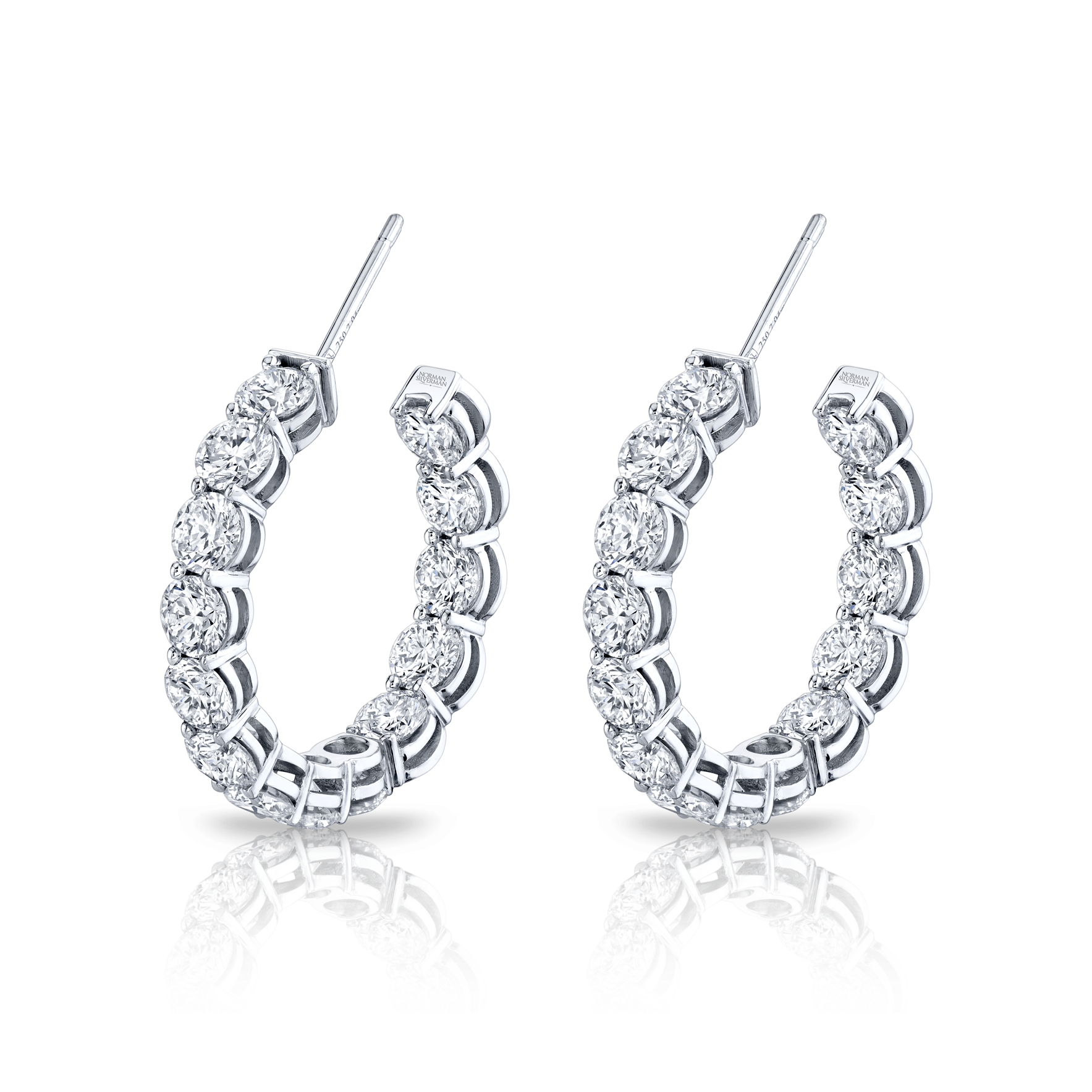 Live in luxury everyday with the Signature Round Diamond Hoops. Brilliant round diamonds set in 18k white gold deliver a little subtle sparkle to your everyday routine. Available in various carat weights from 5.00-12.00.