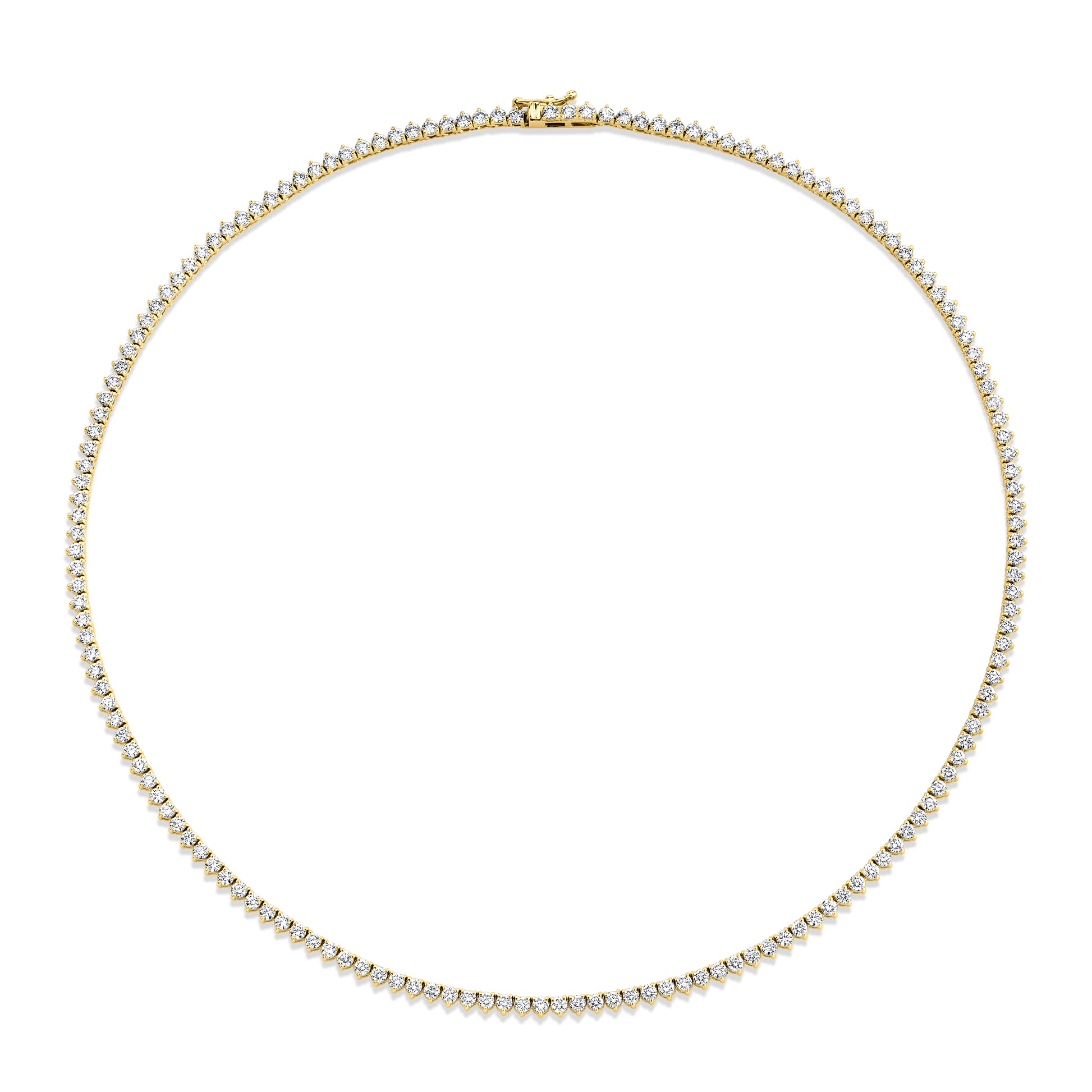 Crafted in luxurious 18k white gold, the Straight Line Diamond Necklace exudes timeless elegance. Featuring a continuous line of 1.9mm round diamonds set in 3-prong mountings, this piece adds a sophisticated touch to any ensemble, making it a perfect choice for refined luxury and lasting beauty. Approximately 5.00 carat total weight.