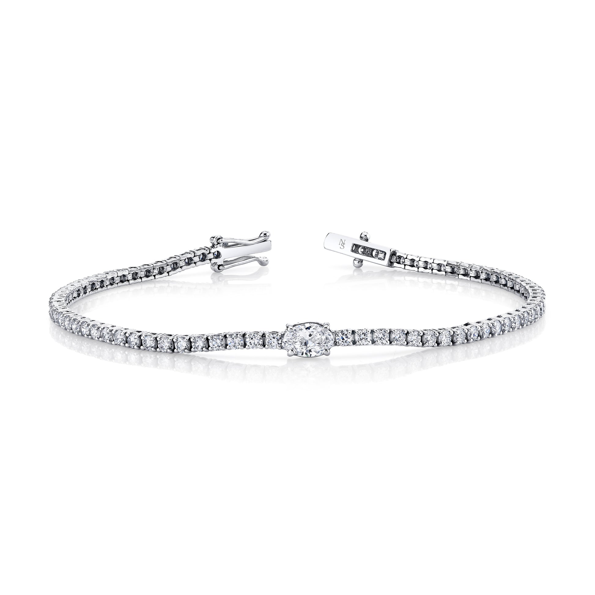 Straight Line Diamond Bracelet with Oval-Cut Center Stone